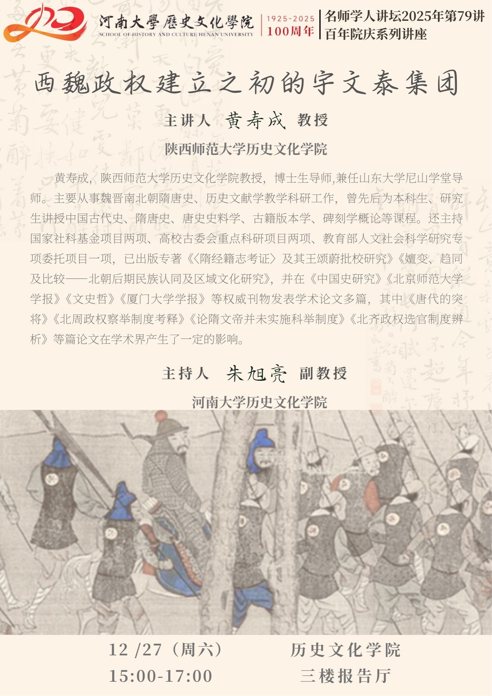 【讲座预告】黄寿成:西魏政权建立之初的宇文泰集团