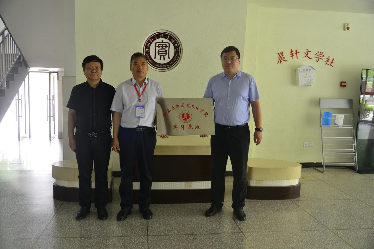 实习基地标牌,并围绕学生就业、学生培养和学科建设等主题进行了交流,希望双方在教师培训、人才培养等方面能够有更广领域、更深层次的合作。