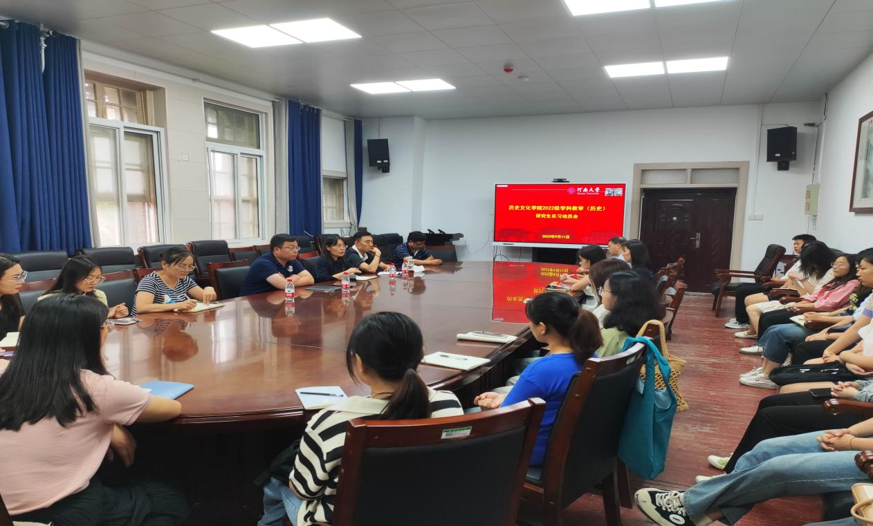 党委副书记周文凯、副院长李竞艳、研科办主任肖莹、辅导员李彬森、学科历史指导老师邱胜利、李恒以及2022级学科教学(历史)专业全体同学参加了此次会议。