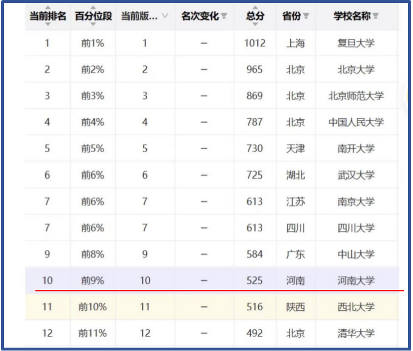中国史学科以量化积分525分居全国高校第10位,排名进入全国前9%,与去年同期相比,提升了6个位次,积分和排名居全校首位。