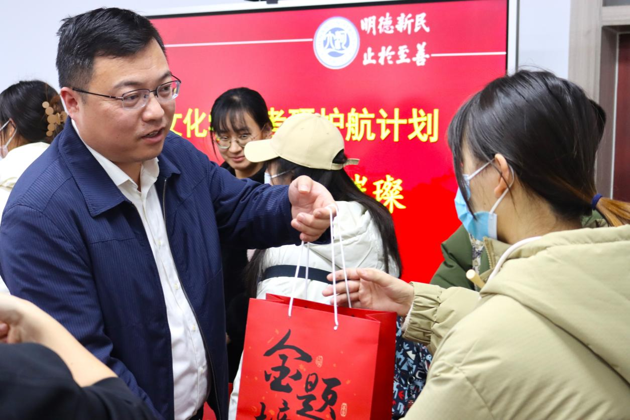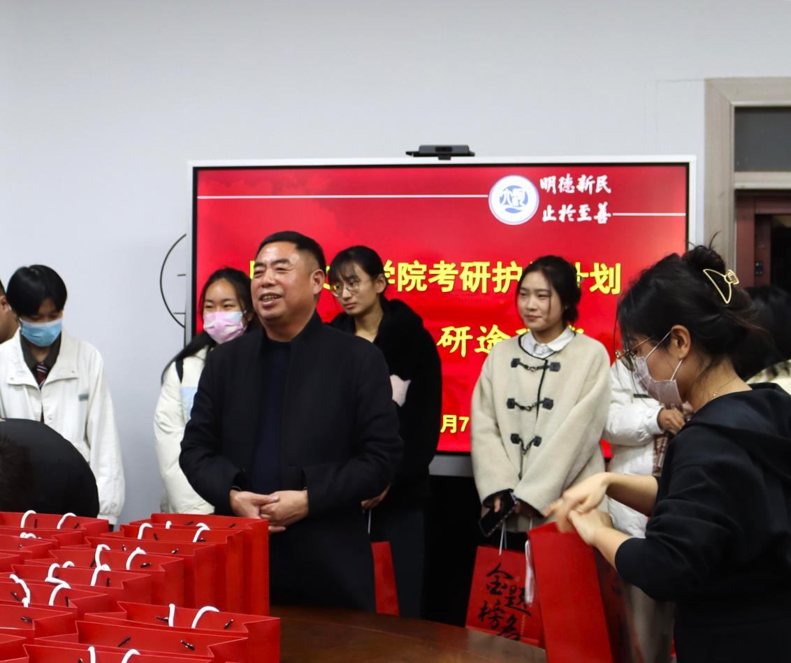 为考研学子发放“金榜题名福袋”,为赴考学子送上暖心祝福。
