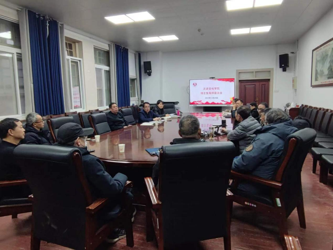 在三楼会议室举行博士生导师座谈会,全体博士生导师参会,座谈会由副院长李竞艳主持。