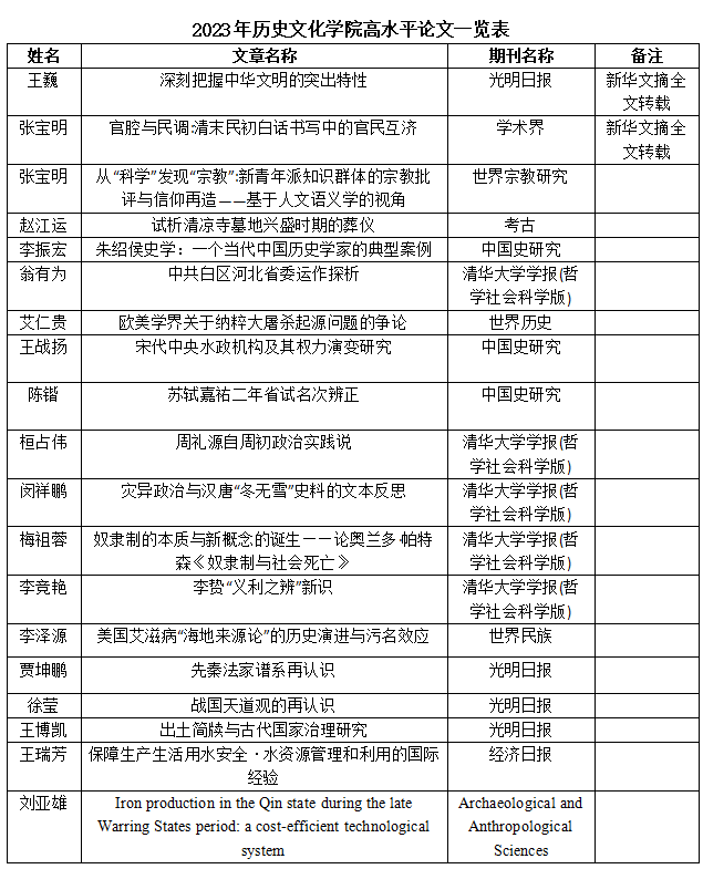 2023年,免费性爱影片 教师共发表学术论文105篇,其中CSSCI期刊论文65篇,在免费性爱影片 认定的人文社会科学A、B类期刊,SSCI期刊及《经济日报》、《光明日报》理论版发文18篇。王巍教授、张宝明教授的文章被《新华文摘》全文转载。
