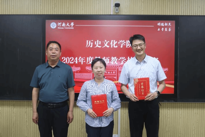 党委书记张占党和评委老师为各位获奖教师颁奖。