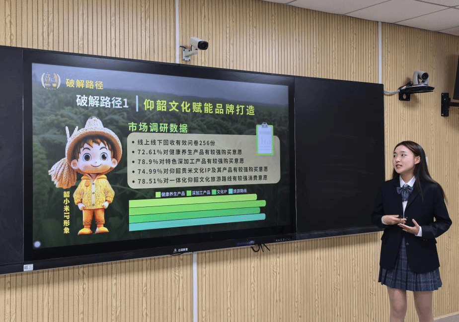 比赛分为路演展示和评委集中点评两个环节,11支参赛队伍按照抽签顺序依次进行。在路演展示中,各队参赛选手分别从项目背景、项目介绍、发展战略、市场分析、营销策略、财务分析、团队分工等各个方面对参赛项目作简要阐述。选手们措辞精当、言简意赅、表达流畅,关注现实难题,紧跟政策导向,聚焦乡村振兴、环境保护、非遗传承、学习互助等方面,提出项目的创意点和创新点,从多方面剖析项目的优劣势及影响因素,对项目的发展规划做出一定说明,并对项目营收情况做出了合理的预测。