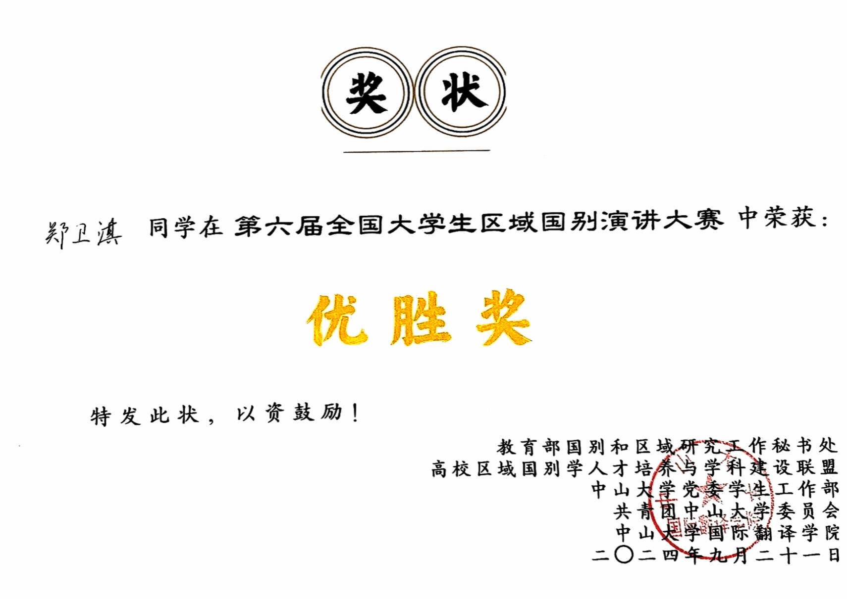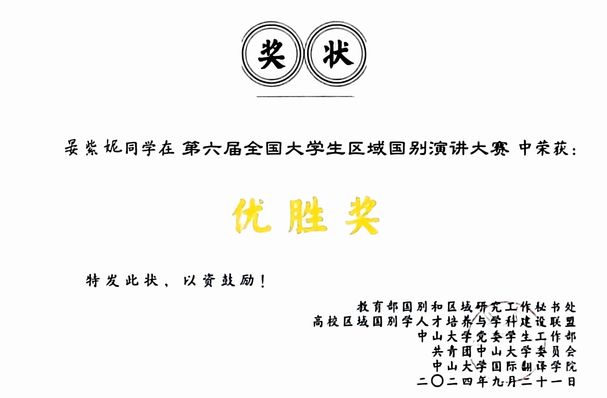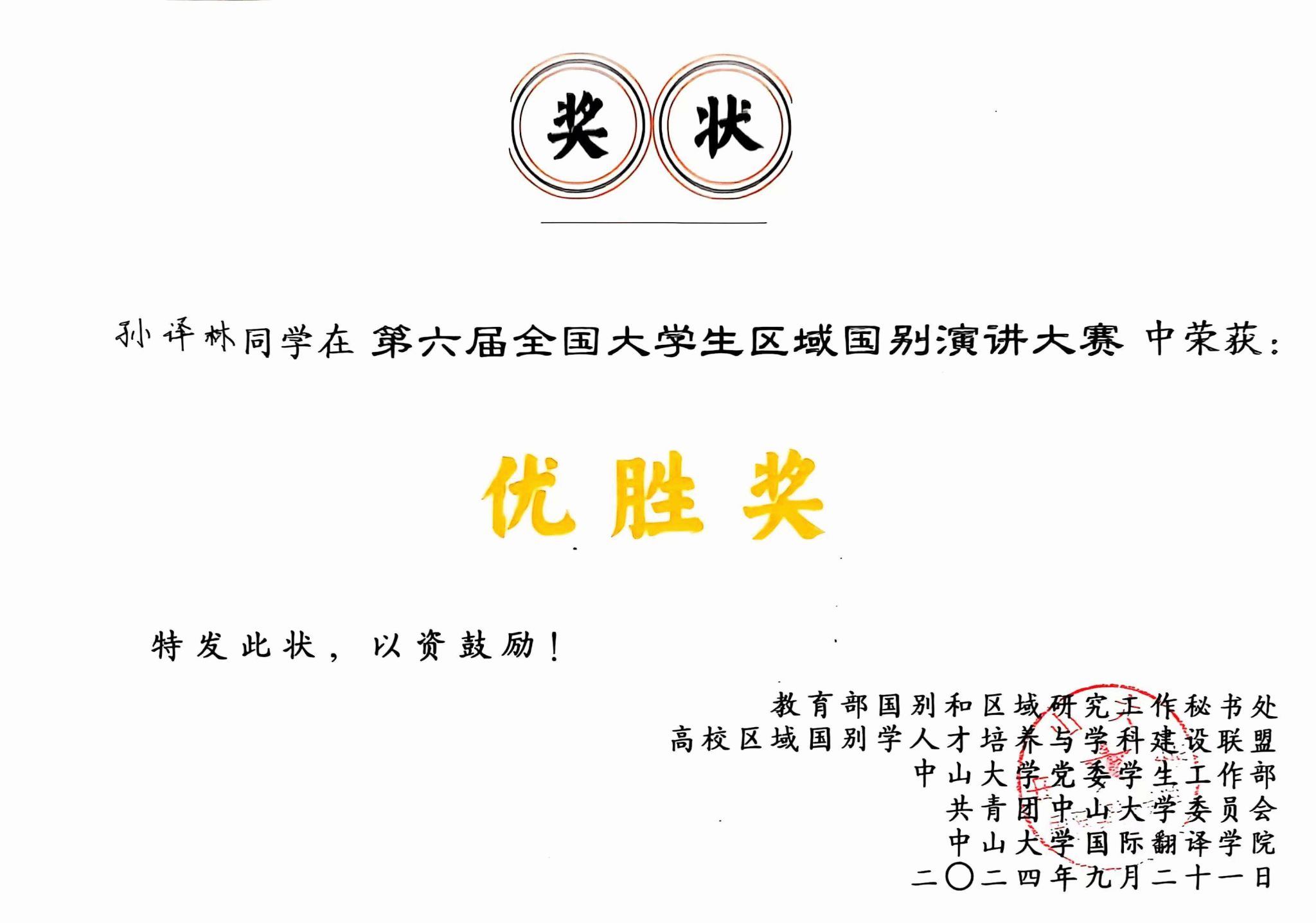 全国大学生区域国别演讲大赛是由教育部国别和区域研究工作秘书处、高校区域国别学人才培养与学科建设联盟联合主办,中山大学承办。据悉,本届比赛共有来自国内70余所高校的240余名学生报名参赛。经初赛选拔,113名大学生进入复赛,24名选手进入决赛环节,角逐最终奖项。