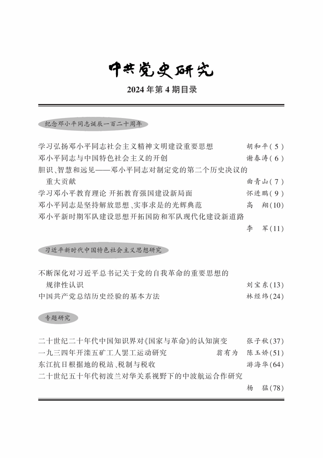 近日,历史文化学院教授翁有为与博士研究生陈玉娇在《中共党史研究》(2024年第4期)合作刊发题为《一九三四年开滦五矿罢工运动研究》的专题论文。