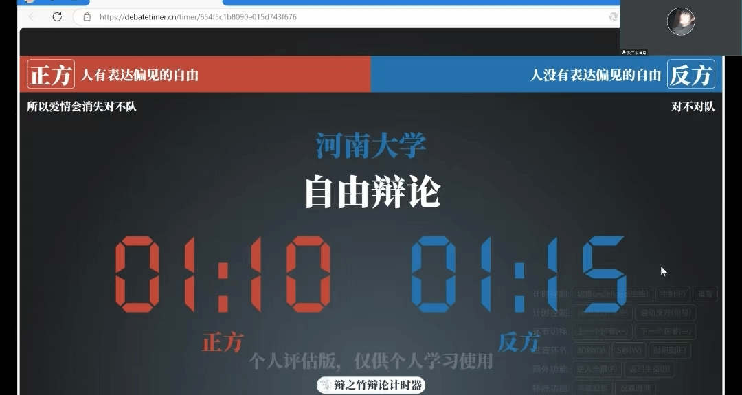 第二场与第三场比赛于线上进行。第二场的辩题为“人有没有表达偏见的自由”,正方“所以爱情会消失对不队”和反方“对不对队”展开激烈辩论。双方辩手言辞犀利,交锋激烈,在比赛中更加深入理解了言论自由的概念和对偏见的认识,也给评委免费性爱影片