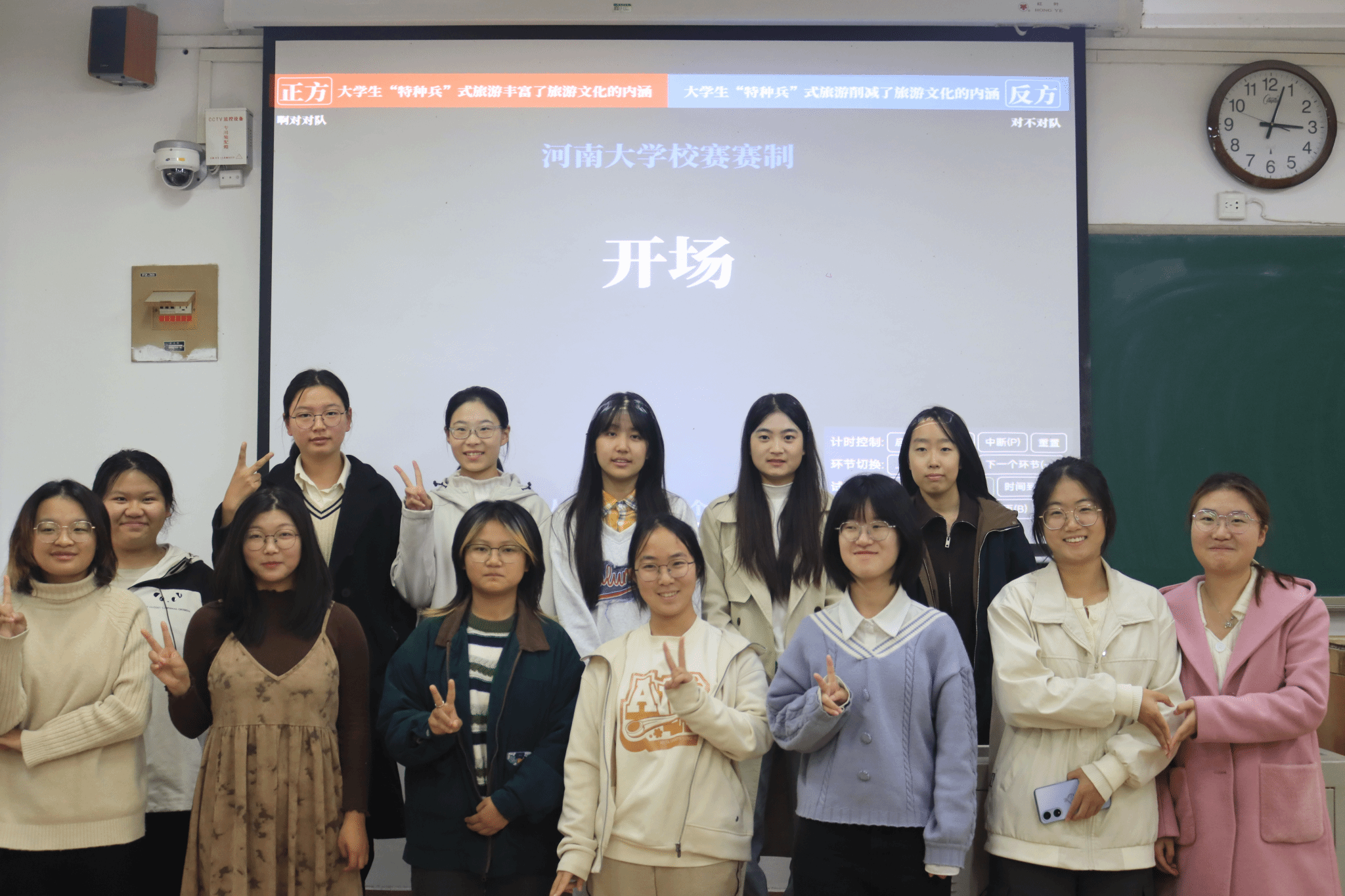 在立论与驳论的激烈交锋中,正方一辩何欣玥与反方一辩白子夫首先就辩题的评判标准达成共识,并围绕“旅游文化内涵”的定义展开激烈辩论。随后,正方二辩史鑫萍以丽江为案例,多角度驳斥对方观点;反方二辩刘媛媛则以坚实数据为支撑,有力回击对手。在盘问环节,双方三辩黄铄雅和邓雨涵均以尖锐质询和坚定立场,从容不迫地阐释自己的观点。最终,在总结陈词环节,反方四辩朱晗月妙语连珠,“不如慢品人间烟火,静观岁月悠长”,而正方四辩张艺曦以一语中的的总结,为这场辩论画上圆满句点。在现场辩手及观众进行合照后,第一场比赛正式结束。