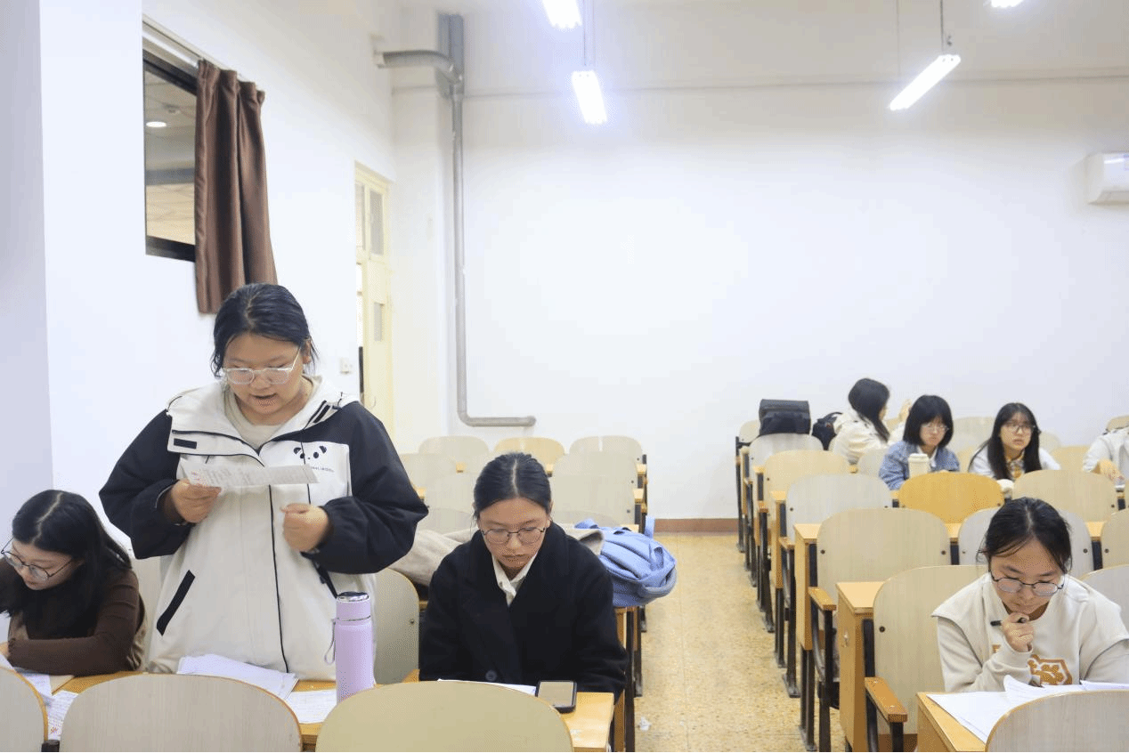 2023级辩论队队长陈尹静怡担任评委。第一场的辩题为“大学生‘特种兵’旅游丰富还是削弱了旅游文化内涵”,参加比赛的两支队伍分别是观点为丰富的“啊对对队”和观点为削弱的“对不对队”。在双方辩手进行简单的自我介绍后,比赛进入开篇立论和驳立环节。