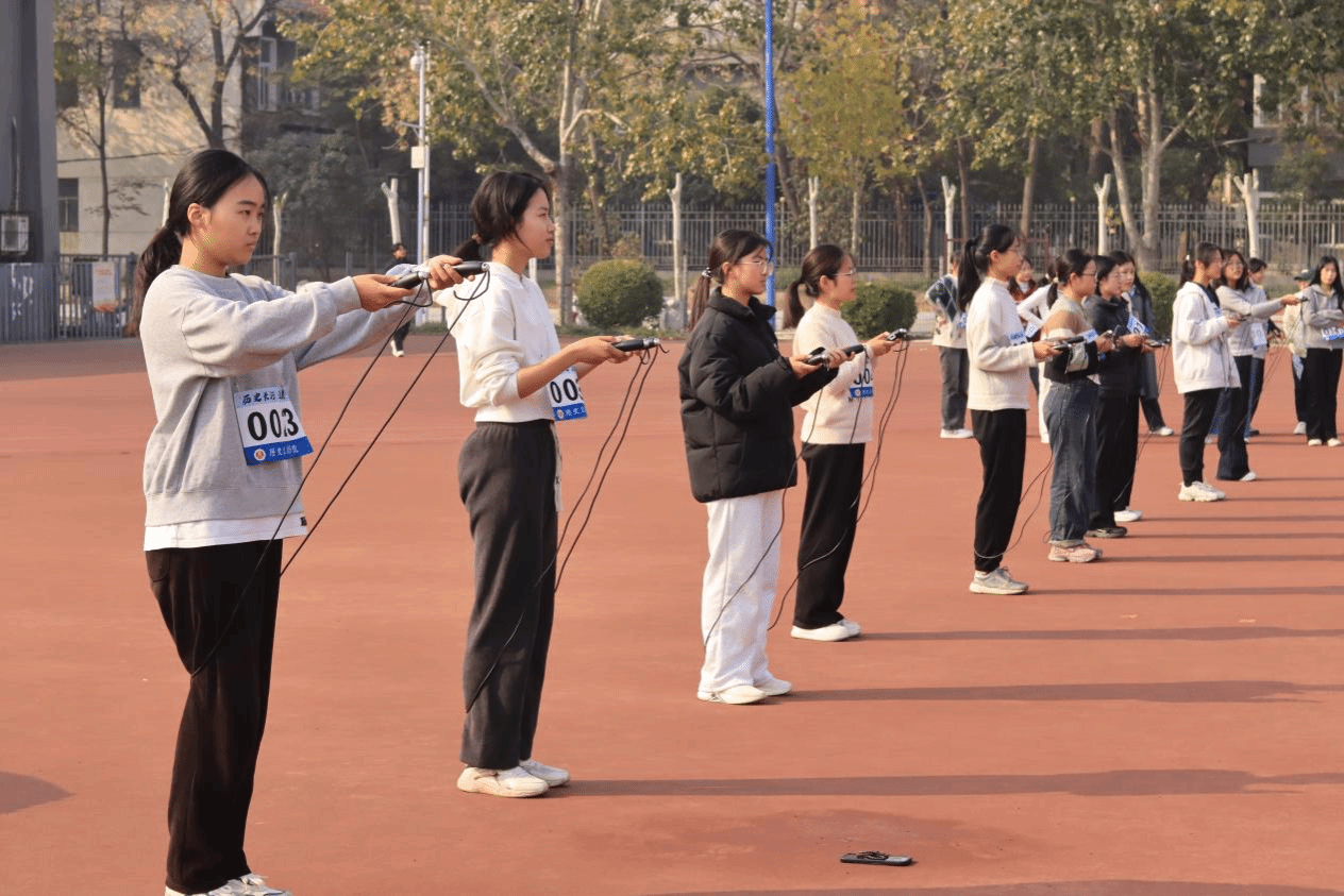男子引体向上,选手们双手正握杠,凭借强劲的臂力,奋力向上拉起身体;女子仰卧起坐,同学们在规定时间内争分夺秒,凭借顽强的毅力和出色的腹部力量,快速起身、躺下,动作规范标准。实心球比赛中,选手们挥舞着手臂,将实心球全力推出,在空中划过一道道美丽的弧线,展现出了力量与技巧的完美结合。跳绳比赛现场,绳段飞舞,选手们步伐轻盈,如蝴蝶翩跹,快速跳动的双脚奏响出动人的乐章。
