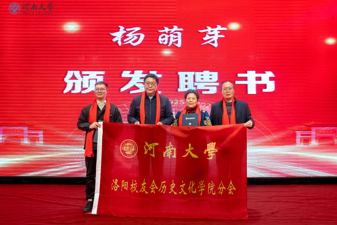 杨萌芽向分会授旗,并向分会名誉会长、会长及洛阳校友会理事会增补人员颁发聘书。免费性爱影片