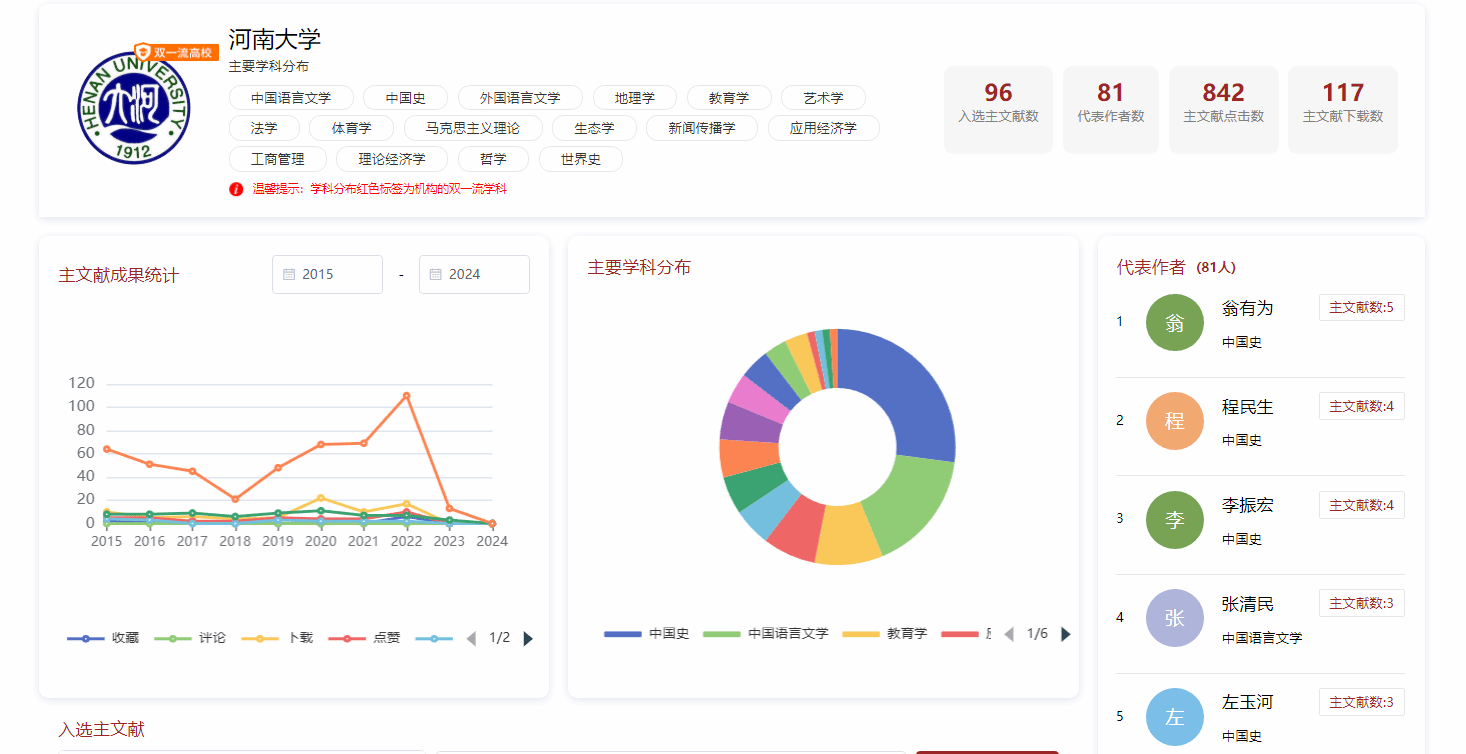 中国史学科众多学者成果入选该平台,充分彰显了该学科在全国的学术影响力和认同度。