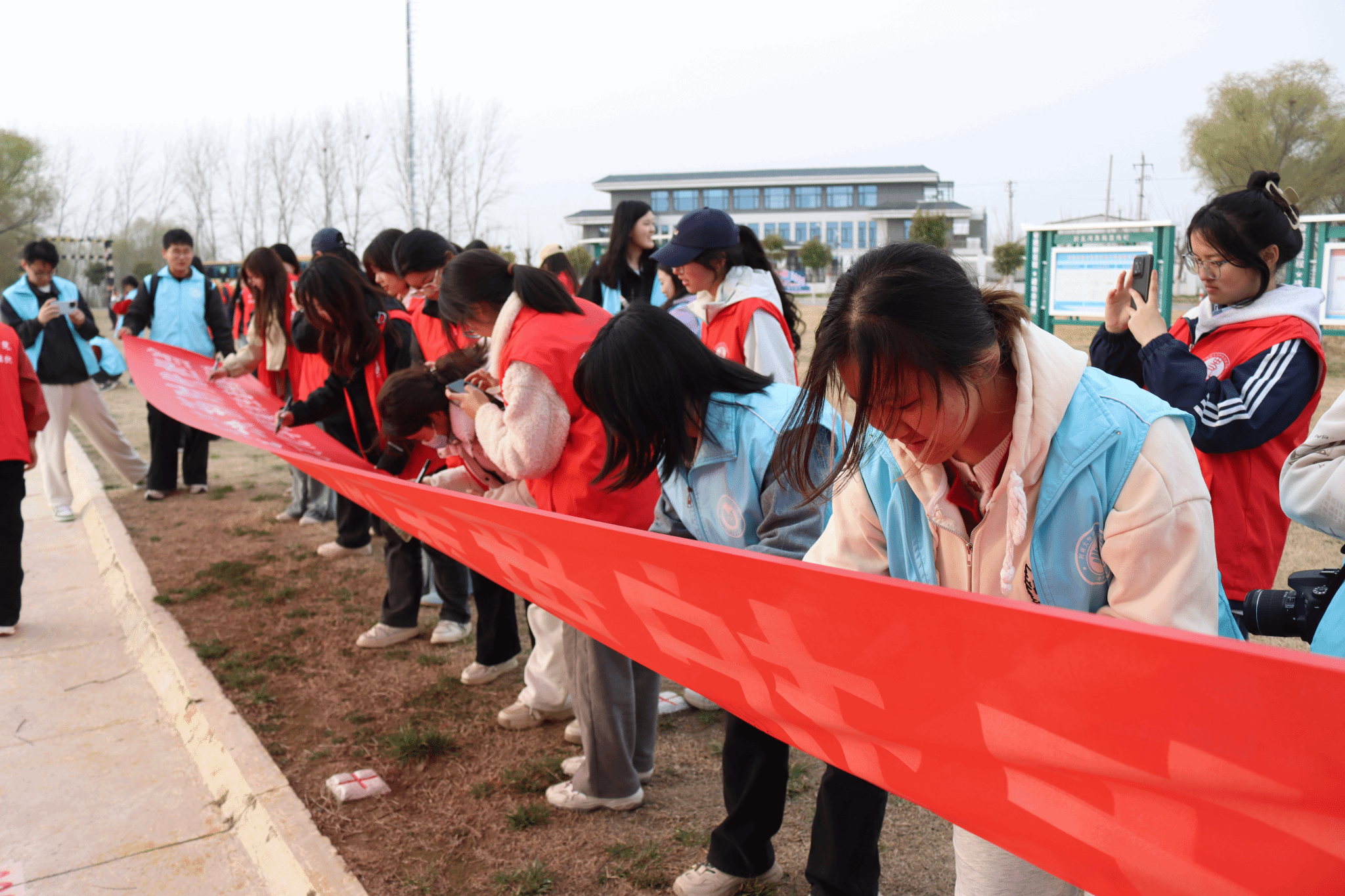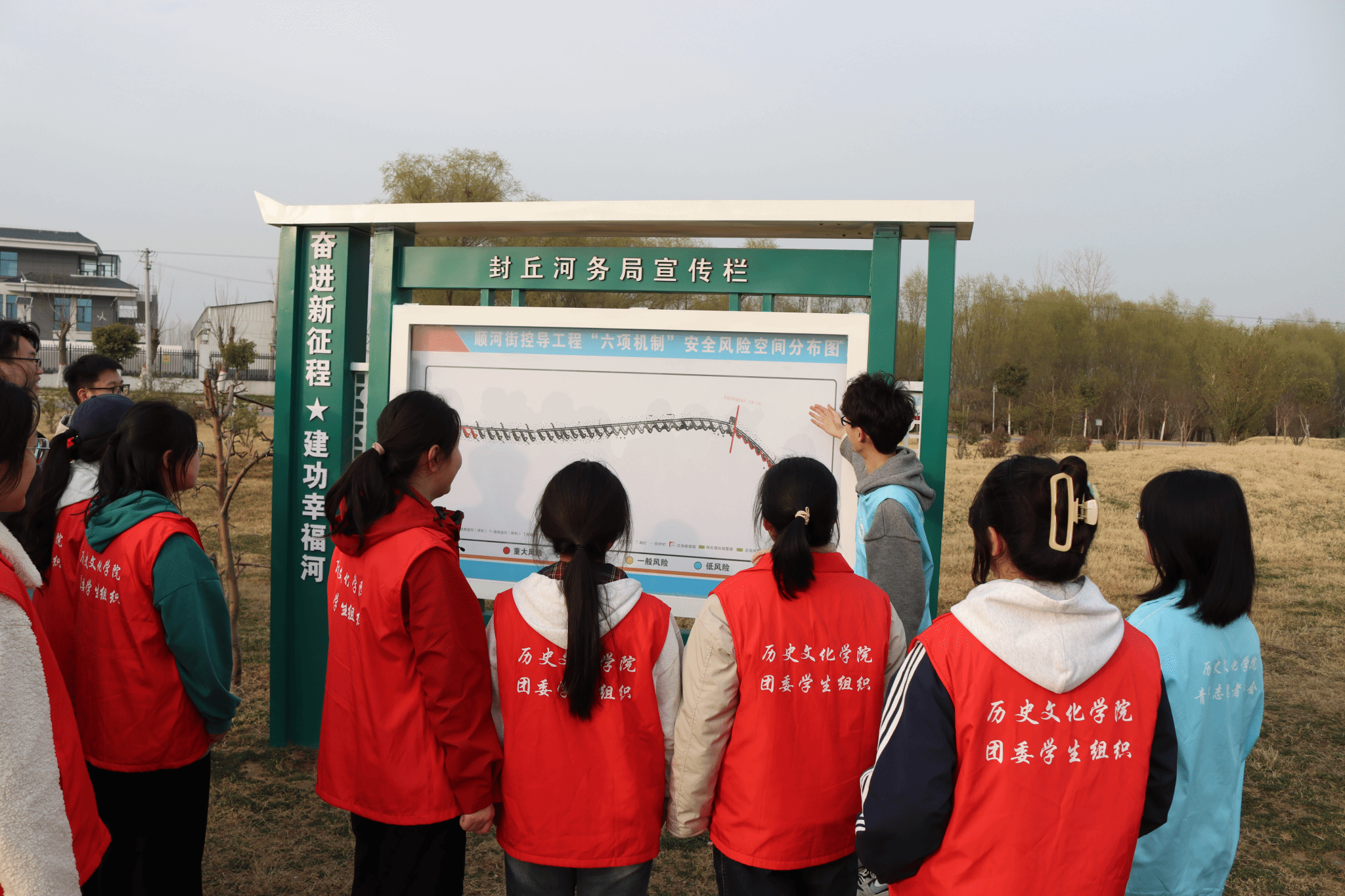 走进封丘河务局黄河文化长廊,宣讲员为师生就黄河变迁、治理历史、黄河精神和黄河流域生态环境现状等内容展开宣讲,详细解释了黄河流域生态保护和高质量发展的重大战略意义。通过实地讲解与互动交流,同学们重温历代治理黄河和保护黄河的艰辛,进一步深化了对黄河流域生态保护重要性的认识,切实体会到青年群体在生态文明建设中的责任与使命。最后,全体师生在印有“守护母亲河,赓续新时代担当”的横幅上郑重签名,书写下对黄河流域生态保护的坚定支持与庄严承诺。