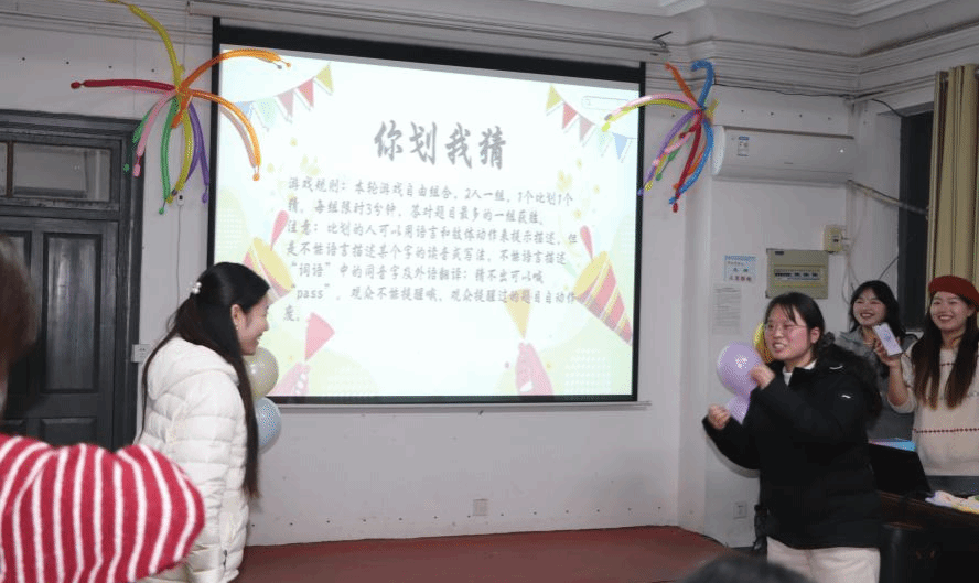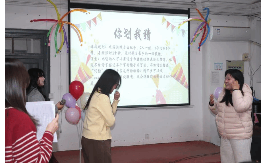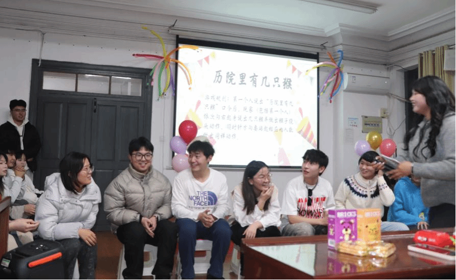 晚会中穿插的互动游戏成为另一大亮点。“猜猜我是谁”“你划我猜”“击鼓传花”“历院里有几只猴”等游戏,既考验智慧与默契,又充满趣味与悬念。同学们踊跃参与,台上台下融为一体,欢笑声、喝彩声此起彼伏。