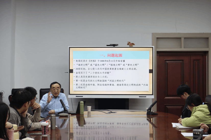 魏楚雄以《河殇》为切入点,引出“海洋文明”和“陆地文明”两种不同文明形态,并通过梳理中外学者的相关观点,表示大陆国家未必是封闭的农耕文明,海洋国家也不一定是开放包容的象征。他提出,西方人最初便歪曲了“海洋文明”的概念,将从事海洋相关活动简单地视为海洋文明,忽视海洋与陆地的关联性。到了启蒙运动时期,西方兴起反对蒙昧主义、倡导理性主义的“文明”思潮,将“文明”“财富”“自由”与“野蛮”“堕落”“压制”对立起来,试图从“西方中心论”视角化解殖民扩张及“殖民相遇”给西方社会秩序带来的诸多挑战,并由此衍生出“文明等级论”。随后,魏楚雄抛出“何为文明”的话题与同学们展开讨论。他表示,文明的核心是人类在精神层次与道德教养方面达到与自身所创造的外部条件相匹配的程度,而非仅指代人类创造的各类外部工具与器物。紧接着,他援引《中庸》《论语》《周礼》等大量古籍为佐证,提出中国的“文明观”包括“天下观”“和而不同”“天下为公、天下大同”和“为政以德、以民为本”等核心内涵。最后,魏楚雄引申出中国“海洋文明”观点,强调中国自古以来的世界观,而且阐明中国“海洋文明”重视道德与礼仪,反对强权扩张的本质。