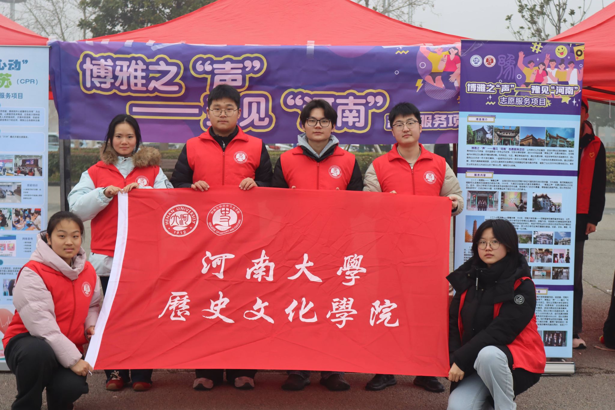 党委副书记周文凯、团委负责人林芷羽及部分学生干部,携 “博雅之‘声’—— 豫见‘河南’” 志愿服务项目应邀参加现场展示。团队依托扎实的专业底蕴与鲜活的志愿实践,向现场观众生动讲述中原文化的厚重底蕴与独特魅力。