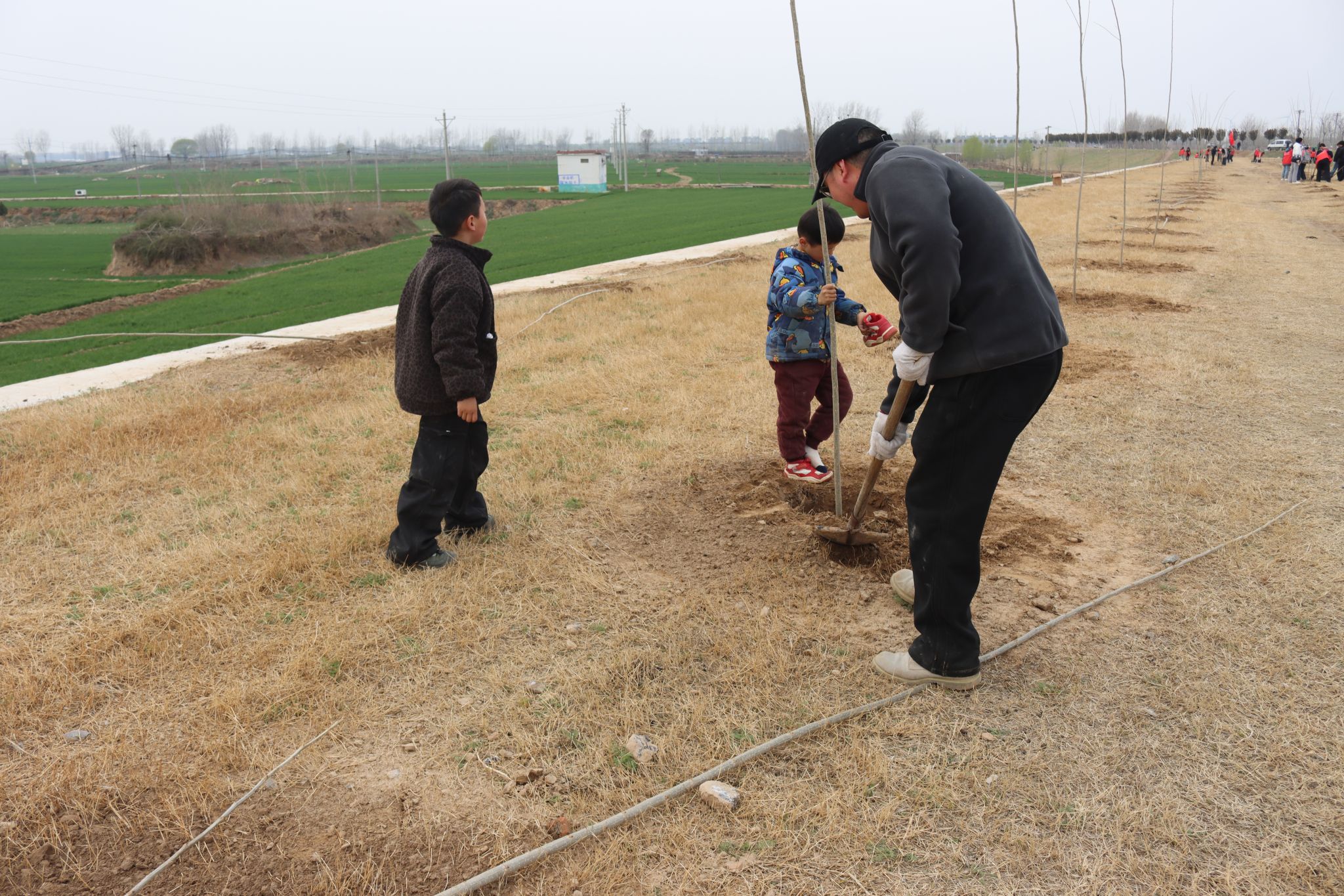植树过程中,附近的村民也纷纷加入进来,村民们带着热情和丰富的种植经验,迅速融入植树队伍中,现场气氛热烈,干劲十足,每个人都在用自己的行动为改善黄河生态环境贡献力量。