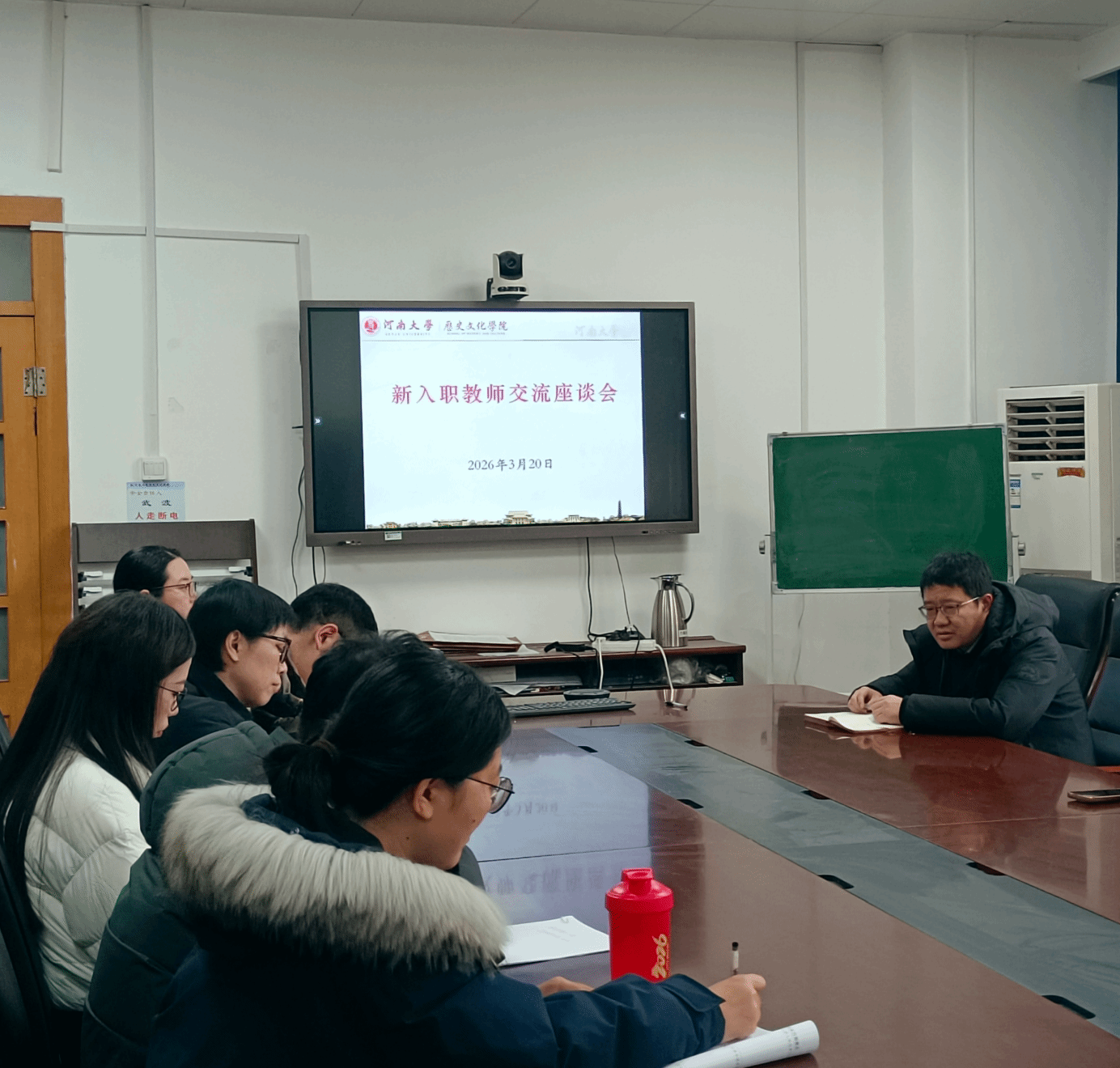 在中国古代史教研室召开近两年新入职教师座谈会。副院长闵祥鹏、教务办主任张芳芳,以及新入职教师崔庆贺、王坚、武微、赵子豪、江琳、刘超燕、艾讯等参加交流座谈。