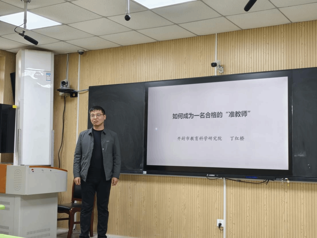 丁红桥以“如何成为一个合格的准教师”为主题,对实习期间应予注意的核心技能进行了系统讲解。他表示,保证实习质量要抓住听课、备课、上课这几个环节,听课要做到课前备、课中记、课后思;备课需紧扣新课标,立足大单元视角整合重构教材,融入情境与任务驱动;课堂教学坚持以学生为中心,避免形式化与标签化,注重素养落地。同时叮嘱实习生谦虚好学、勤于实践,严守职业规范。