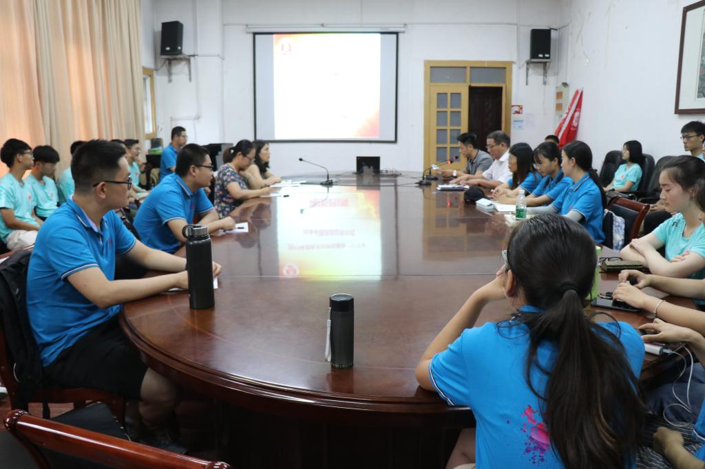 7月9日下午,免费性爱影片 2019年暑期“三下乡”社会实践活动出征仪式在三楼会议室隆重举行。免费性爱影片 党委副书记姜捷,实践活动团队指导老师付燕鸿、胡优静以及全体队员参加出征仪式。仪式由免费性爱影片 团委负责人郑振亚主持。