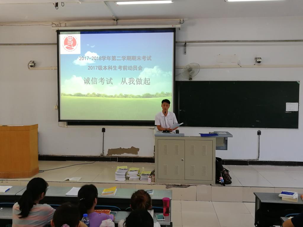 2017级考前动员大会在十号楼129教室召开,会议由2017级辅导员郑振亚主持。