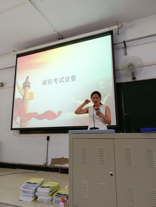 会议上郑振亚老师首先对17级同学的复习情况进行了简单的询问,并督促大家尽快进行复习,充分调动起大家的复习热情。随后,郑老师就诚信考试的相关规定进行了说明,并为同学们展示了违反诚信考试相关规定的处罚条例。此外,郑老师还亲切地嘱咐17级同学考试期间需要携带的物品和注意事项。最后,历史学类、旅游管理和文化产业管理三个专业的学生代表进行了诚信考试宣誓,做诚实守信的“铁塔牌学子”。会后,全体17级同学在诚信考试承诺书上签字,以示自己诚信考试的决心。