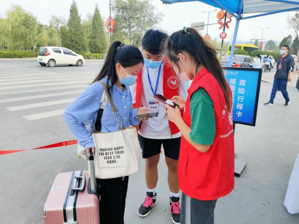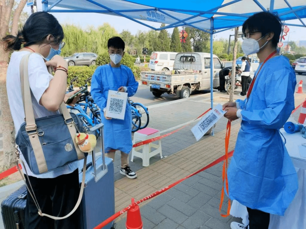 号召,组织志愿者开展志愿活动。志愿活动内容主要包括以下几个方面,消杀测温、引导同学们扫场所码以及帮助返校同学进行今日校园的认证等。