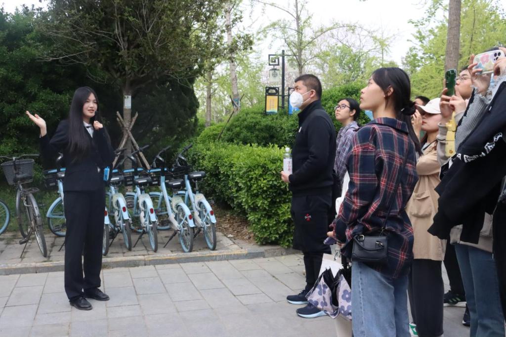 近代建筑群,并在庄重的大礼堂前合影留念。随后,大家继续参观设计精巧、端庄厚重的校史馆与馆藏丰富的文物馆,了解古典美丽的河大校园与其背后所积淀的深厚文化底蕴。一路上,讲解员的讲解伴随着欢快的鸟鸣声声入耳,生机勃勃的自然景色和设计精巧的建筑群相得益彰,大家与春风撞个满怀,与铁塔相望,宴游河大。